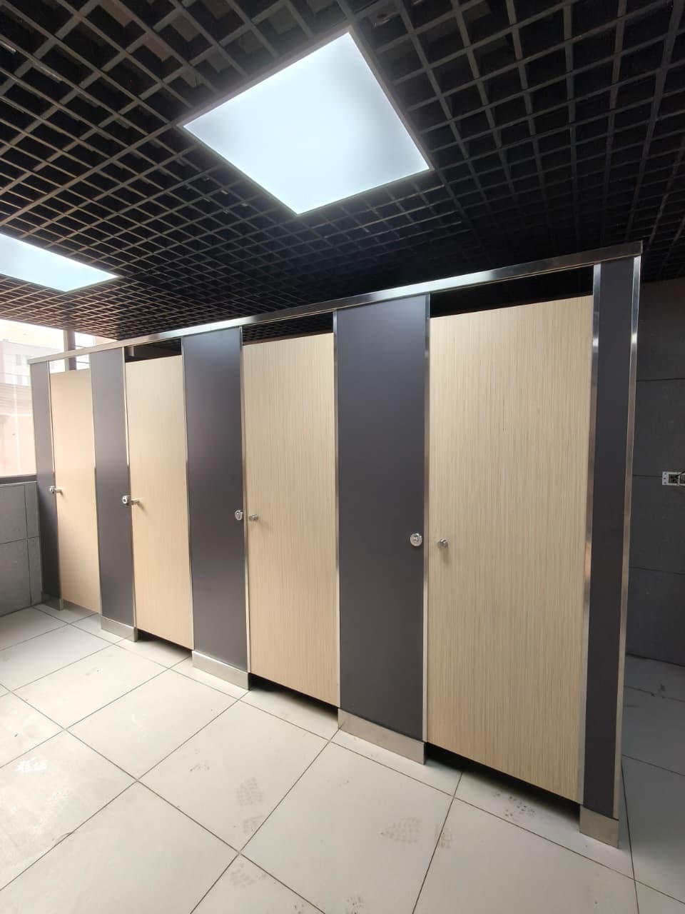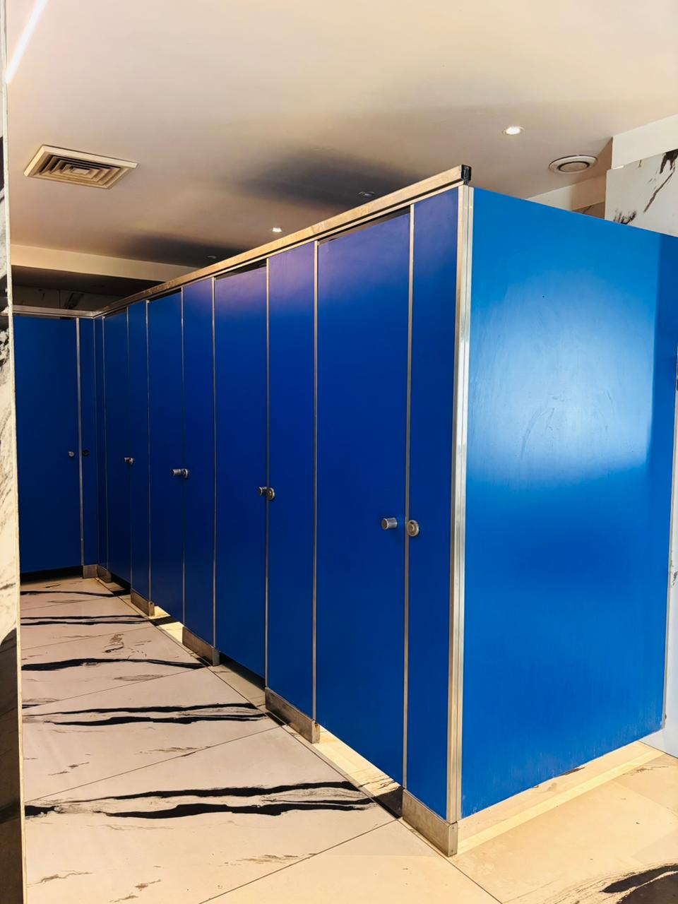Additionally, the cubicles are equipped with privacy indicators and knobs, along with coat hooks for extra functionality.
